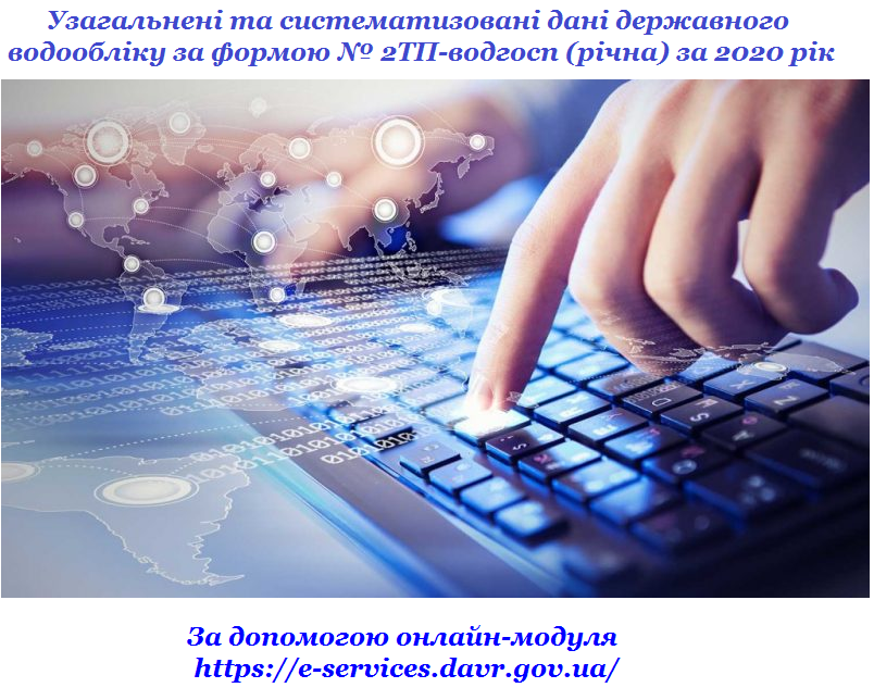 Водокористувачам необхідно подавати Звіти про використання води за формою № 2ТП-водгосп (річна) виключно в електронному вигляді через Портал електронних послуг Державного агентства водних ресурсів України, що знаходиться за посиланням: https://e-services.davr.gov.ua.