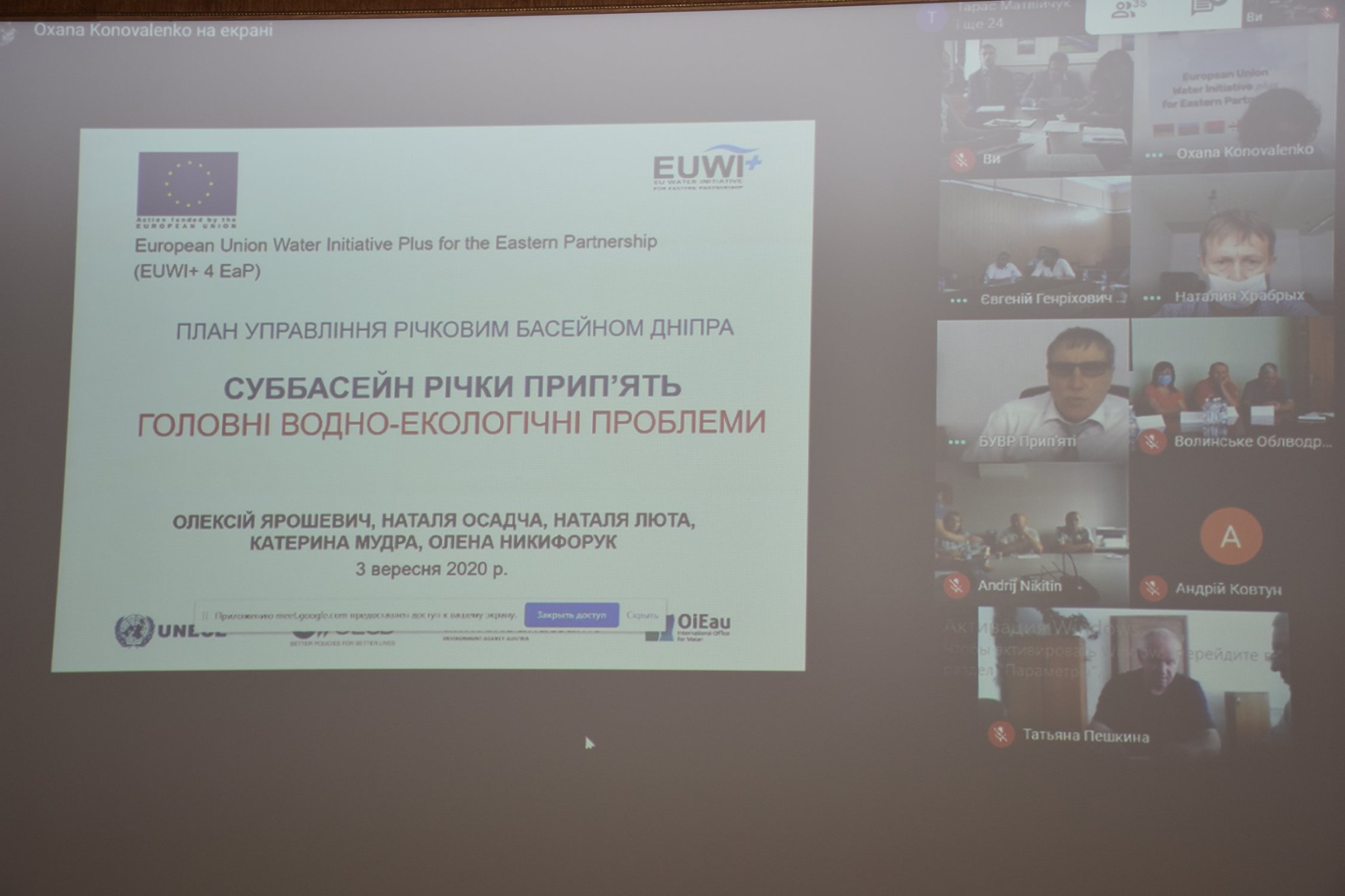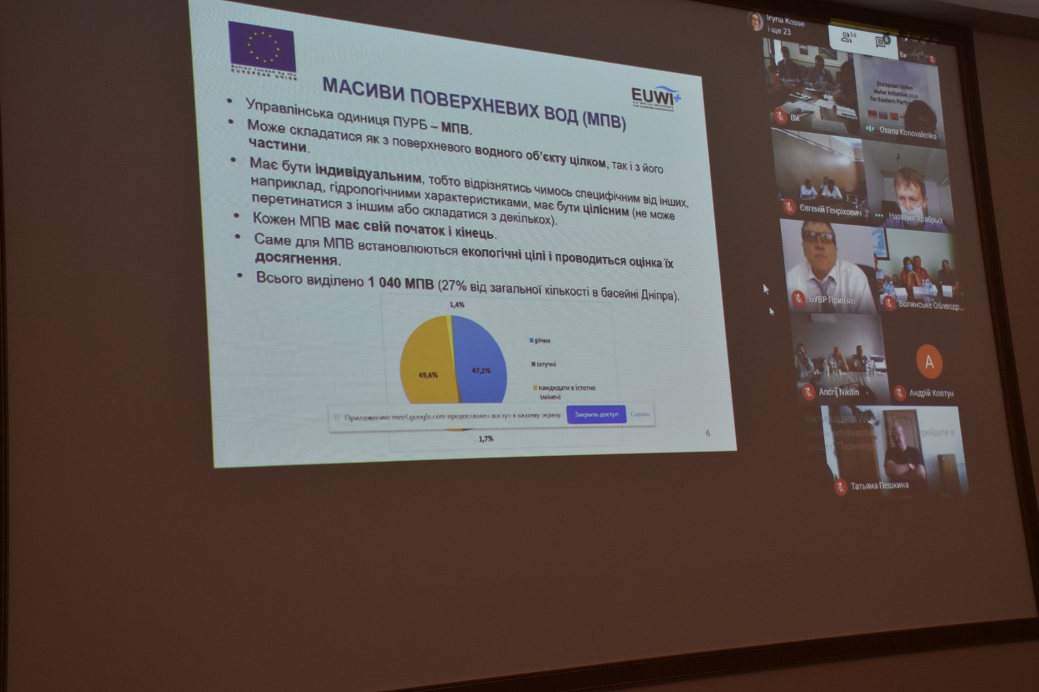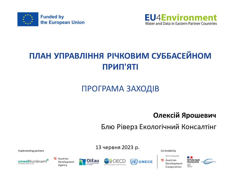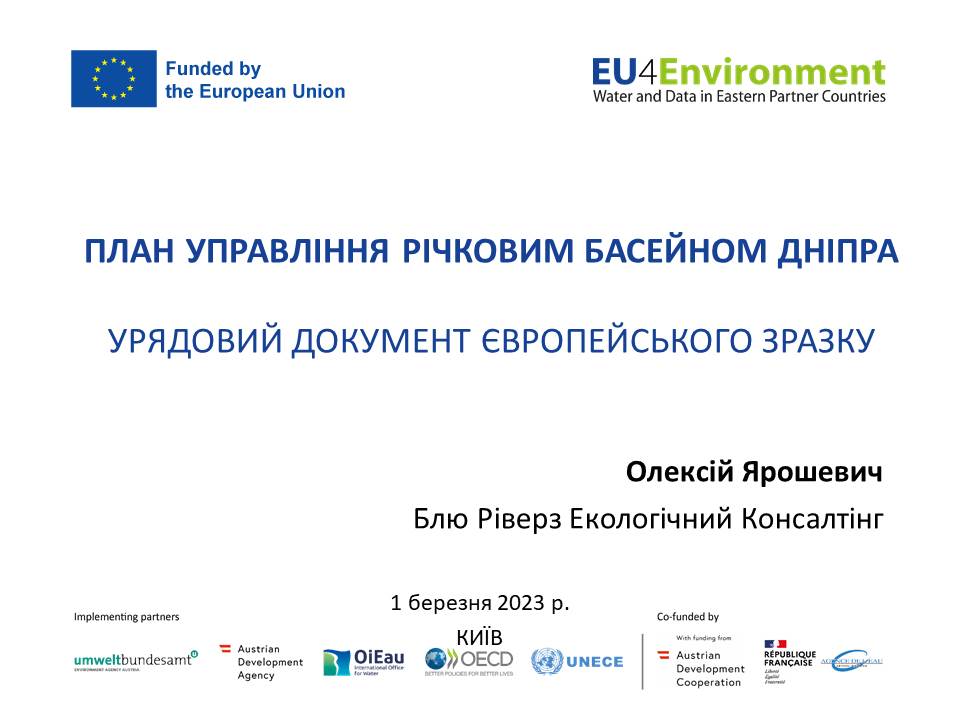 Експерти проекту EUWI+ представили присутнім результати роботи в написанні елементів Плану управління річковим басейном Дніпра, а саме: