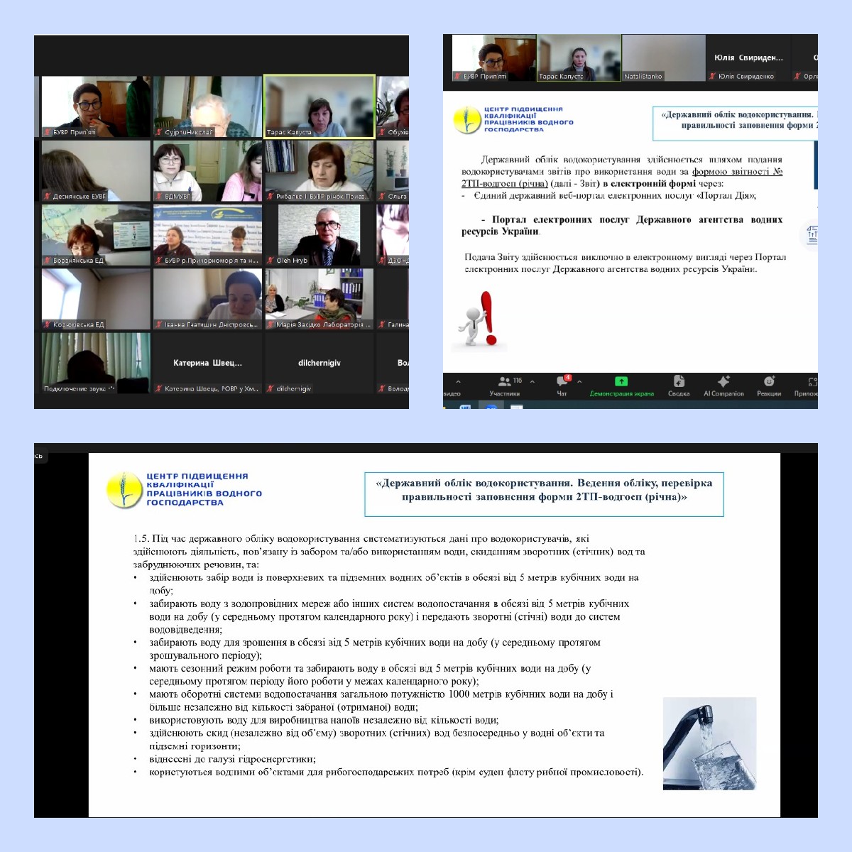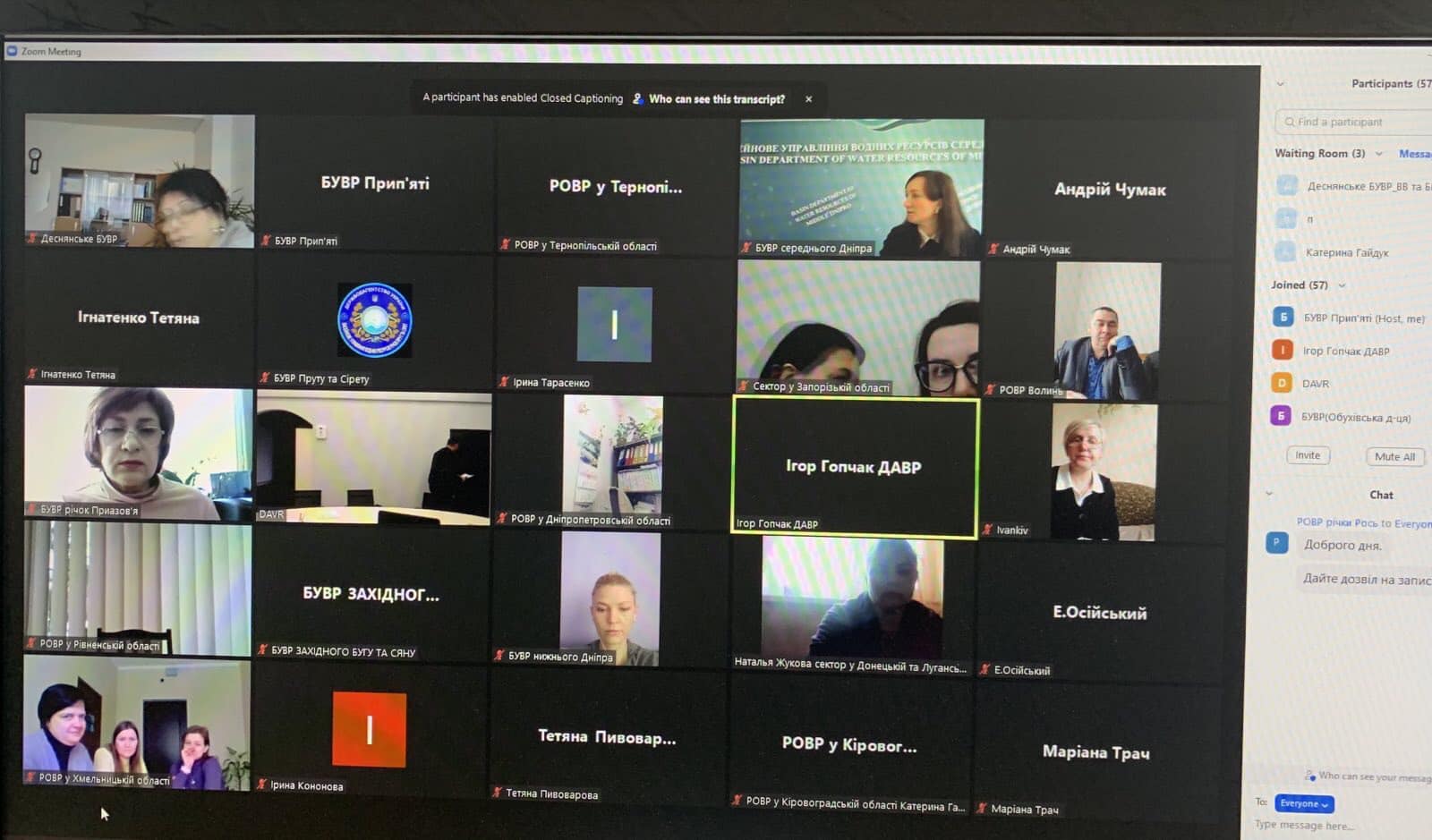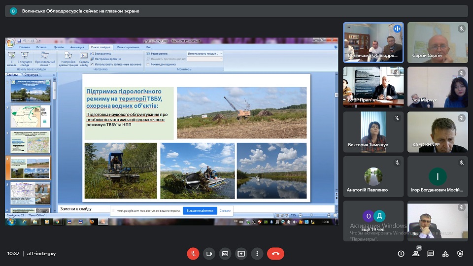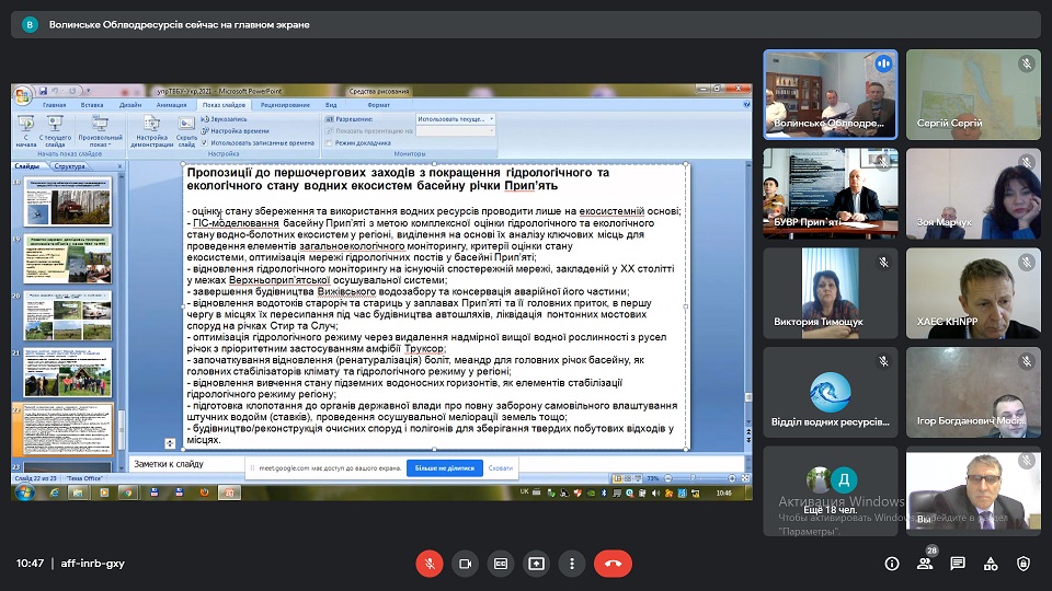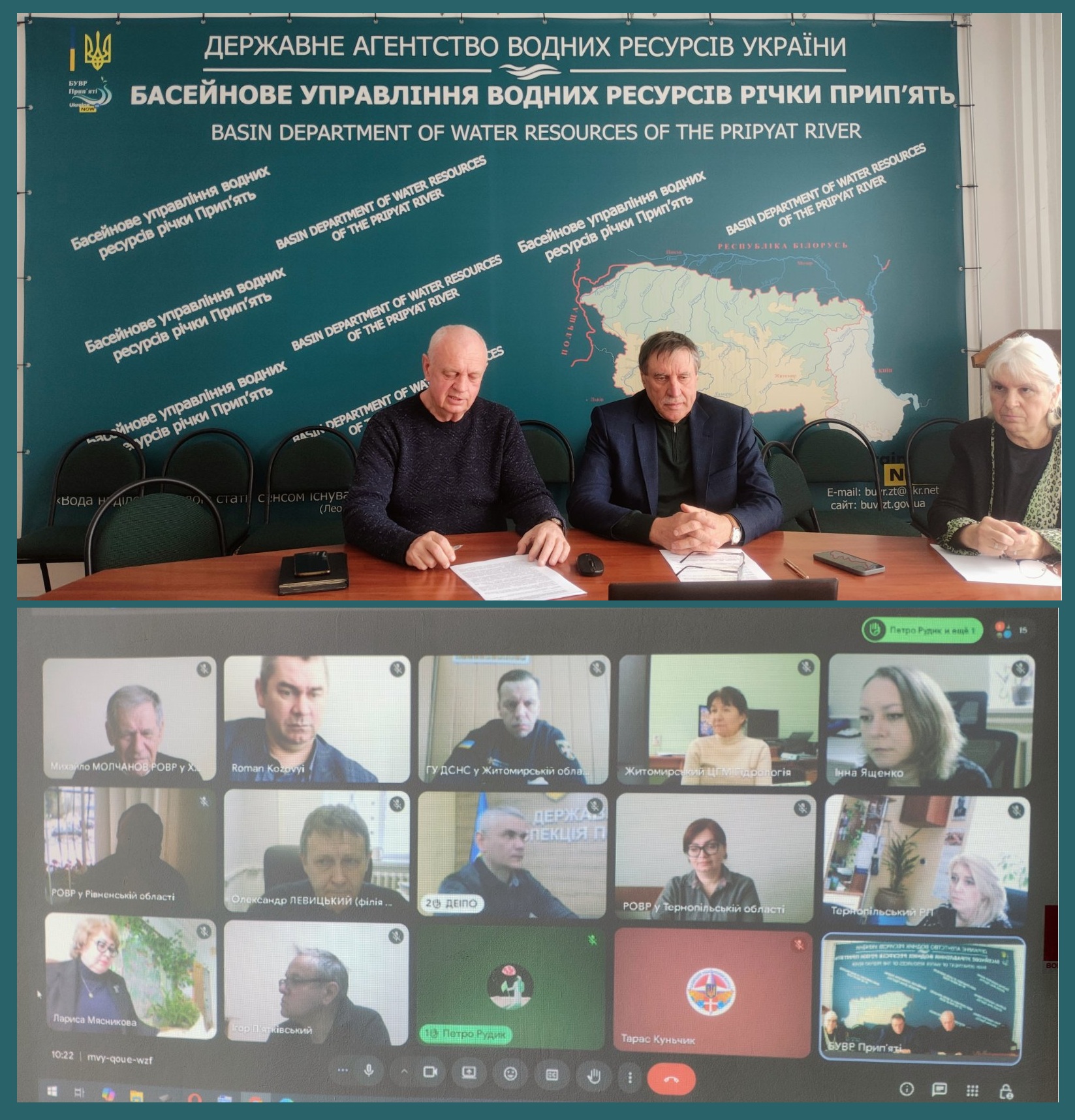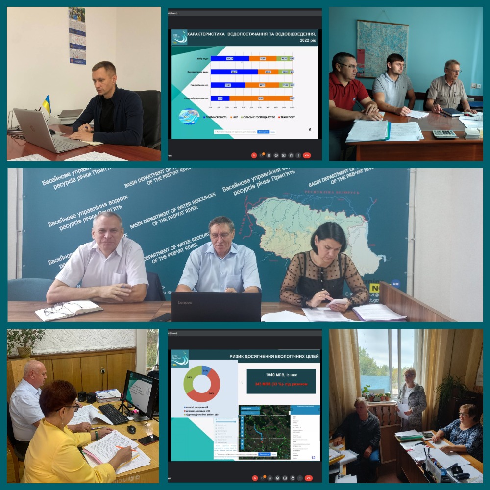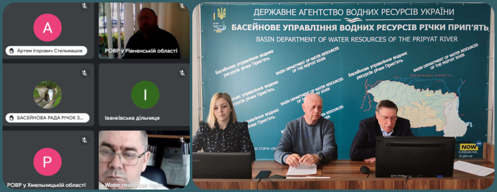 Начальник та фахівці Басейнового управління водних ресурсів річки Прип’ять взяли участь в онлайн нараді щодо встановлення обмеження прав водокористувачів, які здійснюють спеціальне водокористування, у разі настання маловоддя на річках або низького рівня води на водосховищах, загрози виникнення епідемії та епізоотій, аварій або умов, що можуть призвести чи призвели до забруднення вод, та під час здійснення невідкладних заходів щодо запобігання стихійному лиху, спричиненому шкідливою дією вод і ліквідації його наслідків.
