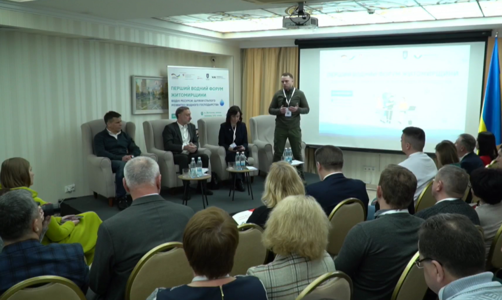 Заступник начальника Басейнового управління водних ресурсів річки Прип’ять Олег Микитин у своєму виступі поінформував щодо стану водних ресурсів у суббасейнах середнього Дніпра та річки Прип’ять у межах Житомирської області, забезпечені потреб населення та галузей економіки у водних ресурсах, встановленні та дотриманні режимів роботи водосховищ, які є джерелами питного водопостачання, виконання Планів управління річковими басейнами, прикладом реалізації яких є КП «Житомирводоканал», який залучив усі можливі фінансові ресурси для свого розвитку: кредити Світового банку, державні й міські кошти, гранти та приватні інвестиції, що дозволить завершити будівництво нових очисних споруд каналізації, модернізацію насосної станції другого підйому, реконструювати ГКНС, встановити сонячні станції для економії електроенергії.