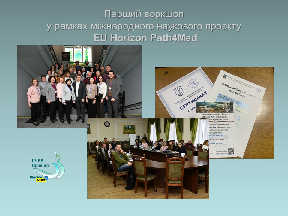 Представниця Басейнового управління водних ресурсів річки Прип’ять долучилася офлайн до першого воркшопу в межах міжнародного наукового проєкту EU Horizon Path4Med «Демонстрація інноваційних шляхів вирішення проблеми забруднення води та ґрунту в Середземноморській агрогідросистемі», який відбувся на базі Національного університету біоресурсів і природокористування України.